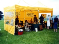 The Guild demonstrates at various events, e.g. Wood Fairs, Local Fairs, Museums, etc., during the summer months. The Guild has its own colourful tents as seen below. See Latest Informationfor details.The demonstrations are to promote woodcarving, display Members' completed works, encourage others to take-up woodcarving and to possibly join the Guild.
